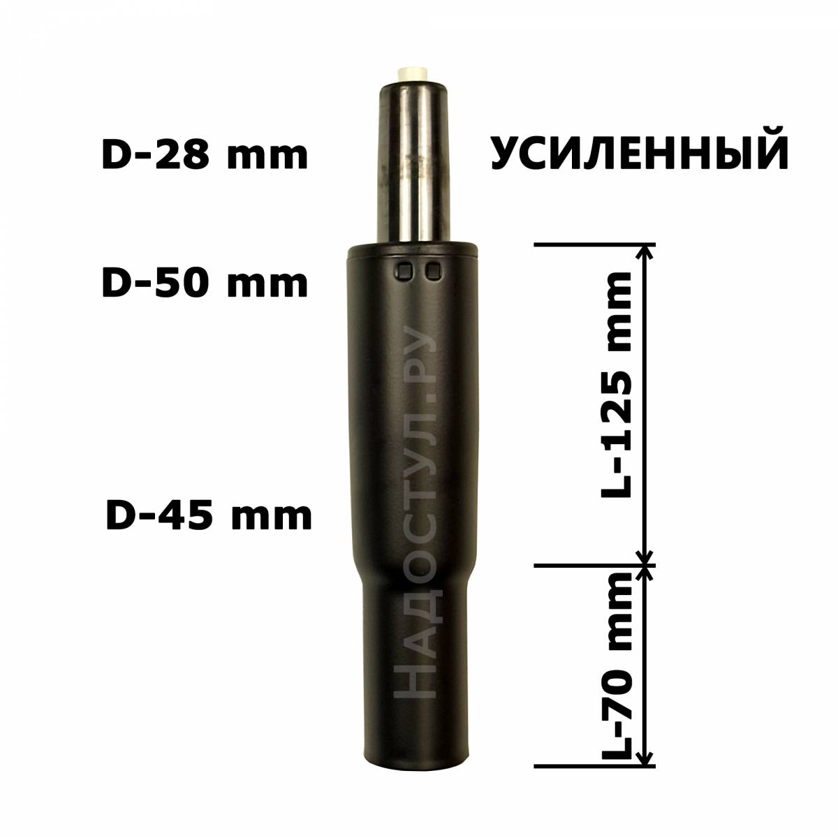 Из подобранных вариантов выберите газлифт нужного класса прочности. Если на кресле сидит ребенок или взрослый до 80 кг, можно купить газлифт прочностью до 120 кг. Если вес сидячего превышает 80 кг мы рекомендуем брать усиленный газлифт. Следует учитывать, если газлифт выдерживает до 120 кг, это не означает то, что на нем может сидеть человек весом в 120 кг. Есть еще вес кресла. Когда вы садитесь на кресло, нагрузка может превышать ваш вес. К тому же максимально допустимая нагрузка на газлифт определяется при правильном расположении нагрузки. Если нагрузка располагается под углом, газлифт быстрее выйдет из строя.