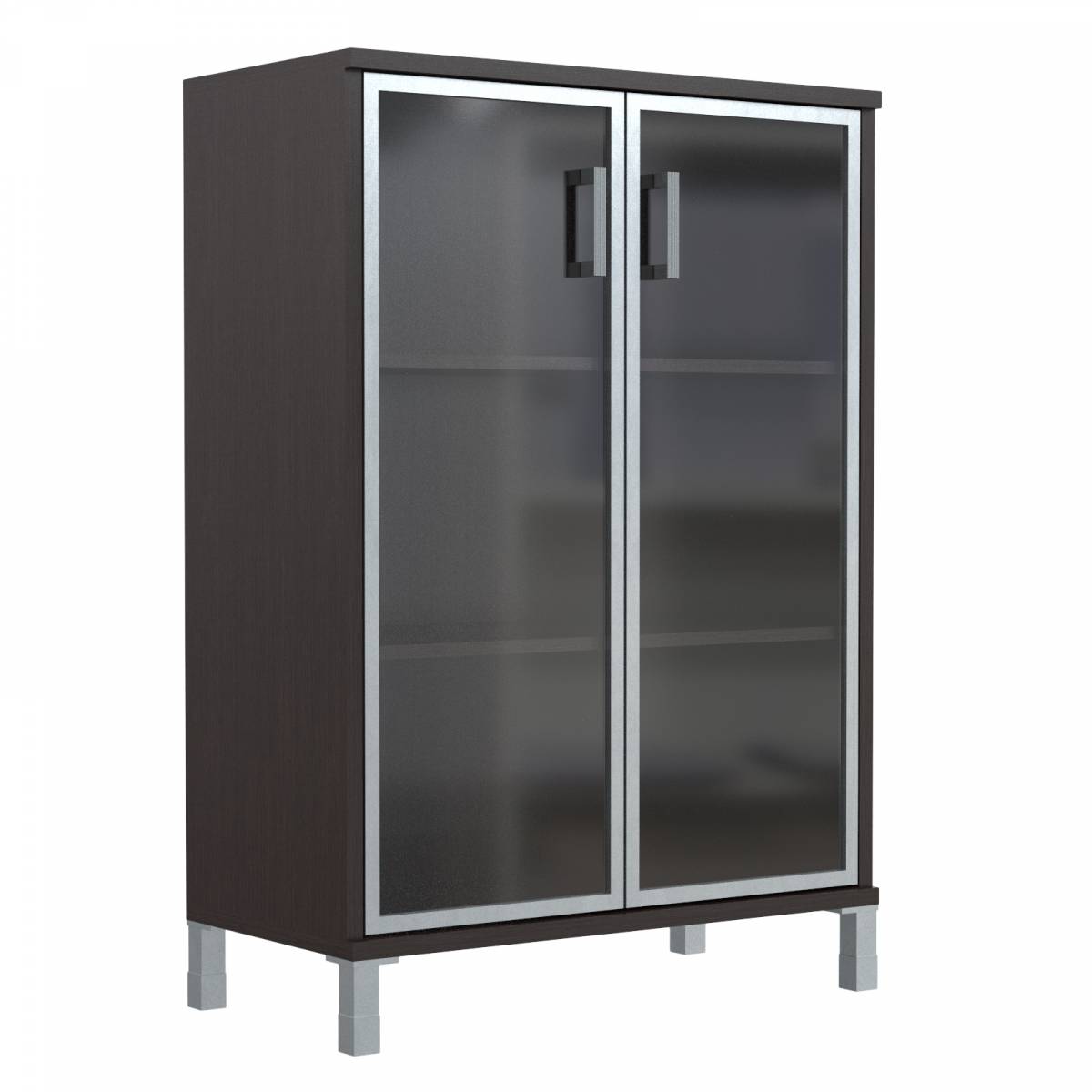 Шкаф низкий со стеклянными дверьми в AL-рамке B 410.4 Венге Магия 900х450х920